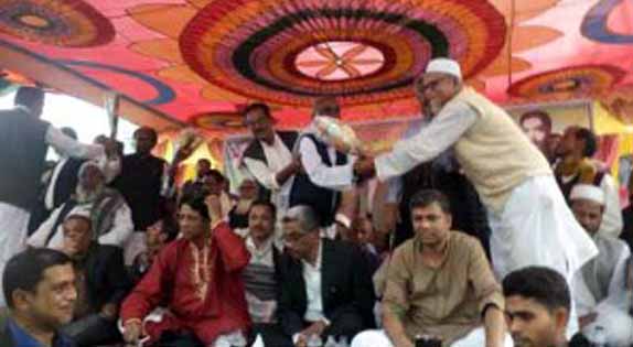 এর আগে মাগুরা থেকে নেতাদের শতশত মটর সাইকেল, মাইক্রোবাস, পিকআপ ভ্যানে বাদ্যযন্ত্রের তালে তালে বিশাল মটর শোভাযাত্রার মাধ্যমে সংবর্ধনা স্থলে নিয়ে এসে ফুল দিয়ে বরন করা হয়।