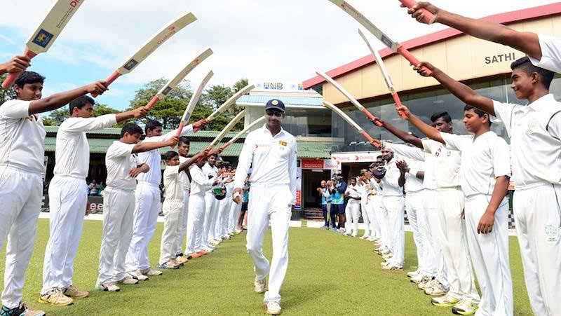ড্রেসিংরূমের প্রবেশ পথে সার বেধে দাঁড়িয়ে শেষ শুভেচ্ছাটা জানানো হলো সাঙ্গাকারাকে। ছল ছল চোখে, ক্রিকেটকে বিদায় বলে সাঙ্গাকারা ঢুকে গেলেন ড্রেসিং রূমে।