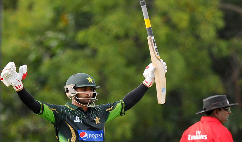 ২৫৬ রানের লক্ষ্যে খেলতে নেমে ৬৫ রানের মধ্যেই দুই ওপেনার আজহার আলী ও আহমেদ শেহজাদের উইকেট হারায় পাকিস্তান। তবে তৃতীয় উইকেটে বাবর আজমের সঙ্গে ৫৮ রানের জুটি গড়েন তিন নম্বরে নামা হাফিজ। ২৫ রান করে বিদায় নেন বাবর। এরপর চতুর্থ উইকেটে শোয়েব মালিকের সঙ্গে ৭৫ রানের আরেকটি জুটি গড়ার পথে সেঞ্চুরি তুলে নেন হাফিজ। তিন নম্বরে ব্যাটিংয়ে নেমে এটা হাফিজের ষষ্ঠ সেঞ্চুরি। আর এতে স্বদেশী ইজাজ আহমেদ, ইউনিস খান ও জহির আব্বাসের পাশে নিজের নাম লিখিয়েছেন হাফিজ। চারজনই ওয়ানডেতে তিন নম্বরে নেমে ছয়টি করে সেঞ্চুরি করেছেন।