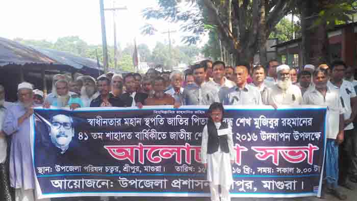 মাগুরার শ্রীপুরে যথাযোগ্য মর্যাদায় জাতীয় শোক দিবস ও বঙ্গবন্ধু শেখ মুজিবুর রহমানের ৪১ তম শাহাদাৎ বার্ষিকী পালিত হয়েছে। আজ ১৫ আগস্ট সোমবার সকাল থেকে বিকাল পযন্ত জাতীয় শোক দিবস ও বঙ্গবন্ধু শেখ মুজিবুর রহমানের ৪১ তম শাহাদাৎ বার্ষিকী উপলক্ষ্যে উপজেলা প্রশাসন, আওয়ামীলীগ, যুবলীগ, ছাত্রলীগ সহ বিভিন্ন সামাজিক ও সেচ্ছাসেবী সংগঠন পৃথক কর্মসূচী পালন করে।