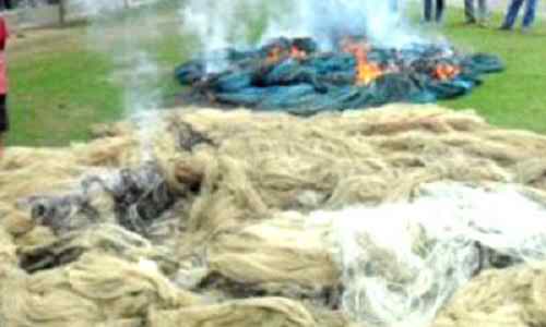 আটককৃত কারেন্ট জাল প্রকাশ্যে আগুনে পুড়িয়ে ধ্বংস এবং তাদেরকে ১০ হাজার টাকা জরিমানা করা হয়েছে।