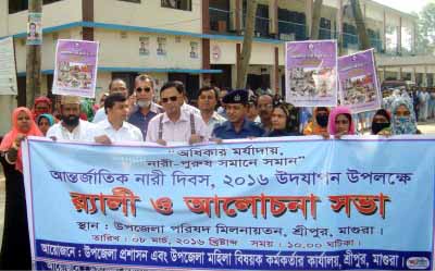 “অধিকার, মর্যাদায় নারী- পূরুষ সমানে সমান”এ প্রতিপাদ্য বিষয়টিকে সামনে রেখে আর্ন্তজাতিক নারী দিবস উপলক্ষে মঙ্গলবার সকালে মাগুরার শ্রীপুরে উপজেলা প্রশাসন, মহিলা বিষয়ক অধিদপ্তর ও জাতীয় মহিলা সংস্থার আয়োজনে বর্ণাঢ্য শোভাযাত্রা ও আলোচনা সভা অনুষ্ঠিত হয়েছে।