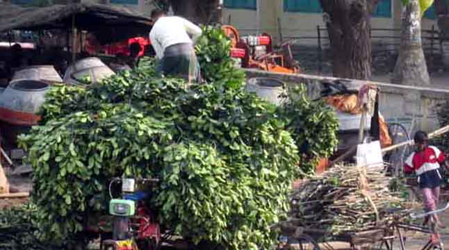 পাতা বিক্রেতা সাইদুর রহমান বলেন, ‘জেলার বিভিন্ন জায়গা থেকে ভ্যান-নসিমনে করে কাঁঠাল পাতা আসে। আমরা পাইকারি কিনে বিক্রি করি। প্রতি আঁটি পাতা ১০-২০ টাকায় বিক্রি হয়। সরবরাহ কমে গেলে দাম আরও বেড়ে যায়।’