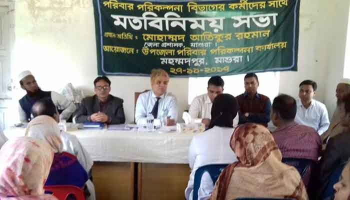মাগুরার মহম্মদপুর উপজেলা পরিবার পরিকল্পনা বিভাগের কর্মীদের সাথে আজ সোমবার সকালে মাগুরা জেলা প্রশাসক মোহাম্মদ আতিকুর রহমানের মতবিনিময় সভা অনুষ্ঠিত হয়েছে।