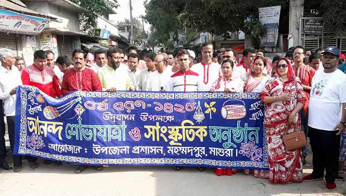 শনিবার (১৪ এপ্রিল) সকালে গ্রামবাংলার ঐতিহ্যকে ধারণ করে মঙ্গল শোভাযাত্রার আয়োজন করে মহম্মদপুর উপজেলা প্রশাসন। প্রতিবারের মতো এবারও মঙ্গল শোভাযাত্রায় হাজির হয়েছেন হাজারো মানুষ। বাংলার চিরায়ত সাজে নববর্ষ বরণ করছে সবাই।
