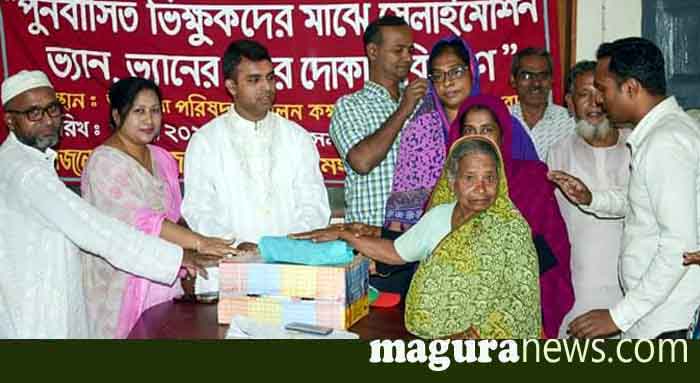 মাগুরার মহম্মদপুরে আজ বৃহস্পতিবার সকালে উপজেলা পরিষদ মিলনায়তেনে পুনর্বাসিত ভিক্ষুকদের মাঝে ১৭টি সেলাইমেশিন, ২টি ভ্যান এবং ২টি ভ্যানের উপর দোকান বিতরণ করা হয়।