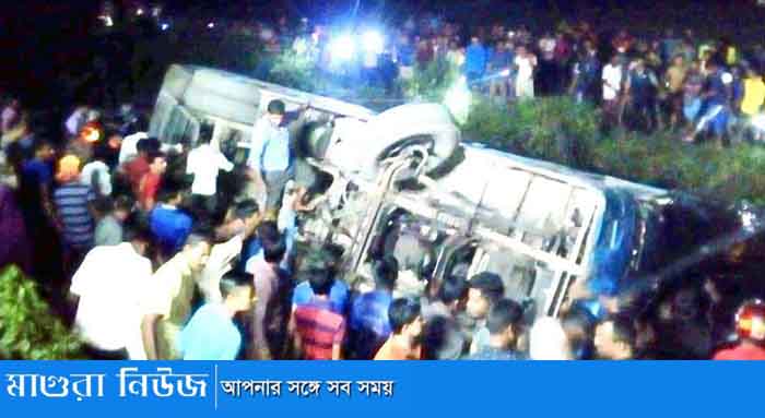 মহম্মদপুর-মাগুরা সড়কের মহম্মদপুরের শ্যামনগর এলাকায় কুড়াদুয়ার ব্রীজের কাছে মহম্মদপুরগামী আশা পরিবহন নামের একটি যাত্রীবাহী বাস নিয়ন্ত্রন হারিয়ে উল্টে ররাস্তার পাশে খাদের পানিতে পড়ে যায়। আজ ( ১৩ নভেম্বর) বুধবার সন্ধ্যা ছয়টার দিকে এ দুর্ঘটনা ঘটে।