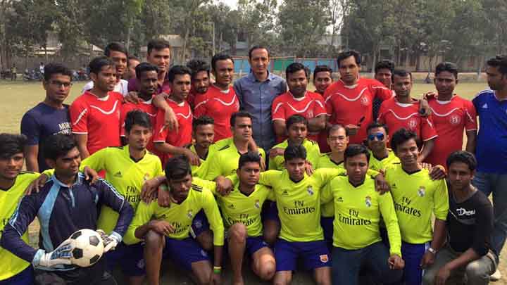 ফুটবল জ্বর মহম্মদপুরেও। ছাত্রলীগের প্রীতি ফুটবল ম্যাচকে ঘিরে আজ উৎসবমুখর মহম্মদপুর। মহম্মদপুর উপজেলা ছাত্রলীগ বনাম আমিনুর রহমান কলেজ ছাত্রলীগ এর মধ্যে অনুষ্ঠিত এই প্রীতি ফুটবল ম্যাচ গোলশূন্য ভাবে শেষ হয়েছে। ছবি- সৌজন্য ।