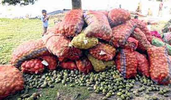 গত বুধবার রাতে জেলার ওপর দিয়ে বয়ে যাওয়া বাতাসে আম ও লিচু ক্ষতি হয়েছে। বৃহস্পতিবার ওসব আম কুড়িয়ে ২-৫ টাকা কেজি ধরে বিক্রি করতে দেখা যায় অনেককে।