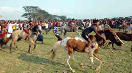মেলার মূল আকর্ষণ ঘৌড়-দৌড় প্রতিযোগিতা। দেশের বিভিন্ন জায়গা থেকে এ প্রতিযোগিতায় অংশগ্রহণের জন্য ঘোড়া আনা হয়। এবারের ঘৌড়-দৌড় প্রতিযোগিতায় ১২টি ঘোড়া অংশ নেয়।