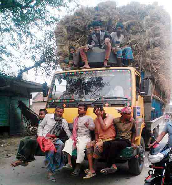 ছবিতে মাগুরার অভ্যন্তরীন সড়কে চলমান একটি খড় বোঝাই ট্রাক। এবার পাঠক আপনারাই বলুন- নিরাপদ সড়ক! আদৌ সম্ভব কি ?