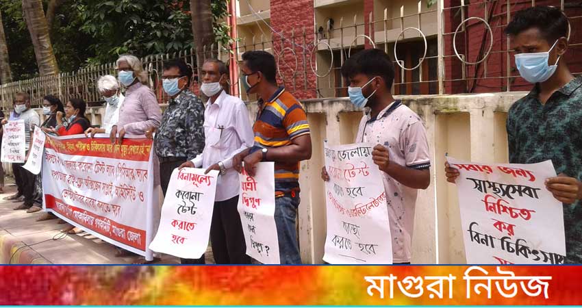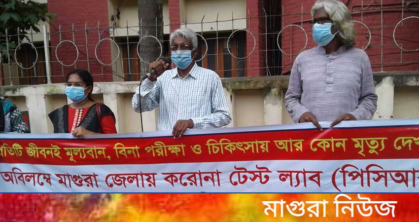 বিশেষ প্রতিবেদক : আজ বৃহস্পতিবার সকাল সাড়ে ১০টার দিকে মাগুরা প্রেসক্লাবের সামনের সড়কে কোভিড ১৯ করোনা ভাইরাস পরীক্ষার জন্য মাগুরা জেলায় পিসিআর ল্যাবস্থাপন , মাগুরা ২৫০ শর্য্যা হাসপাতালে হাইফ্লো অক্সিজেন, আইসিইউ এবং ভেন্টিলেশন স্থাপনের দাবীতে মাগুরায় মানববন্ধন অনুষ্ঠিত হয়েছে। করোনা দূর্যোগ মোকাবেলায় গণকমিটি মাগুরা জেলা এর আয়োজন করেন । মানববন্ধনে গণকমিটির নেতাকর্মীরা অংশ নেন। মানববন্ধনে বক্তব্য রাখেন করোনা দূর্যোগ মোকাবেলায় প্রতিরোধে গণ- কমিটির আহবায়ক এটিএম মহব্বত আলী , সদস্য সচিব এটিএম আনিসুজ্জামান , যুগ্ন সদস্য সচিব সম্পা বসু প্রমুখ।