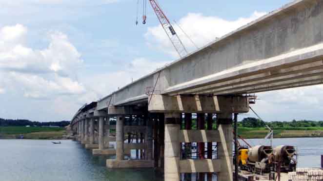 আট ব্রিজে মাগুরার লাখ মানুষের মুখে হাসি। সত্যিই মাগুরার মহম্মদপুরের মধুমতি নদীসহ আটটি ব্রিজ লাখো মানুষের মুখে হাসি ফুটিয়েছে। এলাংখালিতে মধুমতি নদীর উপর প্রায় ৬০ কোটি টাকা ব্যয়ে নির্মিয়মান শেখ হাসিনা সেতুর প্রায় ৯৫ ভাগ কাজ ইতিমধ্যেই সম্পন্ন হয়েছে। এ বছরের মধ্যেই অ্যাপ্রোচ রোডসহ অন্যান্য কর্মকাণ্ড শেষ করে দ্রুত চালু হবে ব্রিজটি। এটি নির্মাণ হলে দুই পারের লাখ মানুষের যোগাযোগ ও কর্মসংস্থানসহ জীবনমান বাড়বে বলে আশা করছেন সংশ্লিষ্টরা। ব্রিজটি চালু হলে মাগুরা থেকে মহম্মদপুর হয়ে ঢাকার যোগাযোগ আরও সহজ হবে।