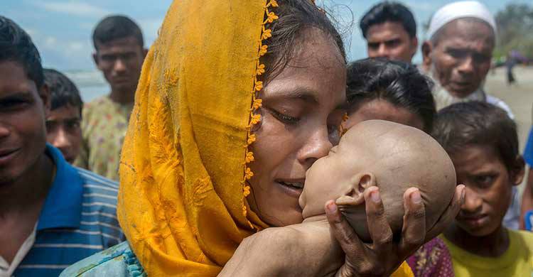 ছোট্ট শিশু মাসুদকে বড় যত্ন করে মা হানিদা রেখে ছিলেন কোলে। বুকের ধনকে বাচাঁতে মিয়ানমারের রাখাইন রাজ্যে সেনাবাহিনীর হত্যাযজ্ঞ থেকে কোনো রকমে বাংলাদেশে আশ্রয় নিয়েছেন তিনি।