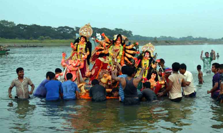 হিমালয় নন্দিনী, দুর্গতিনাশিনী দেবী দুর্গা শান্তির বারতা নিয়ে সাম্প্রদায়িক সম্প্রীতির বন্ধন সুদৃঢ় করতে মর্ত্যলোকে মাত্র ৫ দিনে আগমন। ভক্তদের পাপ মোছন করে শান্তিময় বিশ্ব প্রতিষ্ঠা করার জন্য মাতৃদেবীর আগমন। তা সম্পন্ন করে তিনি ফিরে গেলেন কৈলাশে। এ সময় দেবীদুর্গাকে শঙ্খ-উলুধ্বনি আর ঢোলের তালে তালে বিদায় জানান ভক্তরা।