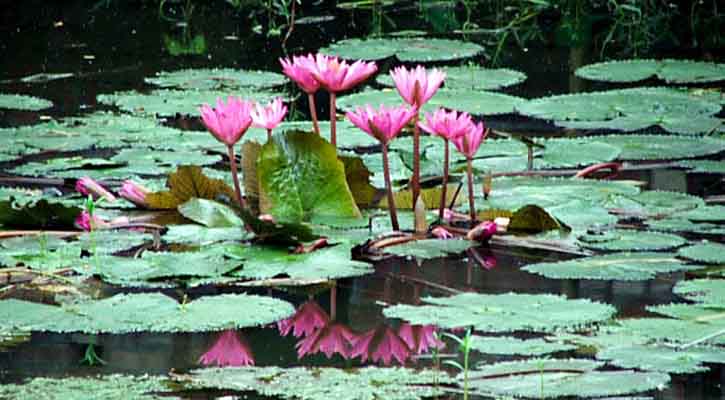 শাপলার রঙিন হাসিতে উজ্জ্বল মাগুরার নালিয়ার বিল। বর্তমানে টলটলে পানিতে ভরা নালিয়ার বিল।লতা-পাতা গুল্মে ভরা বিলের পানিতে শত সহস্র লাল শাপলা হার মানিয়েছে সূর্যের আভাকেও