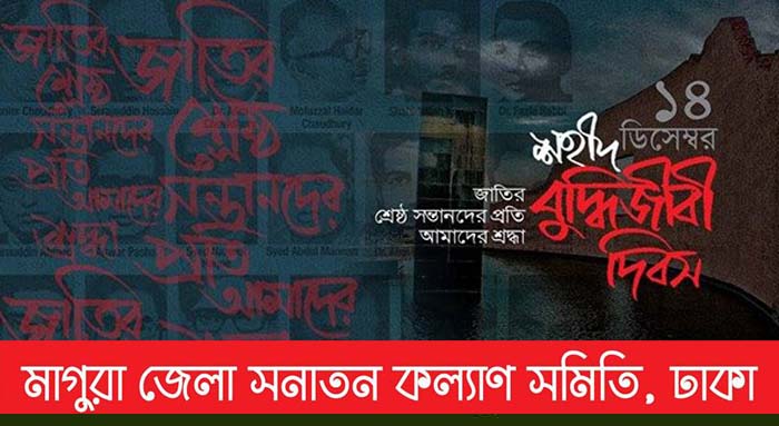 শহীদ বুদ্ধিজীবী দিবস উপলক্ষে জাতির শ্রেষ্ঠ সন্তানদের বিনম্র শ্রদ্ধায় স্মরণ করেছে ঢাকায় বসবাসরত মাগুরা জেলার সকল সনাতন ধর্মাবলম্বীদের সম্মিলিত সংগঠন ‘মাগুরা জেলা সনাতন কল্যান সমিতি’ ঢাকা।
