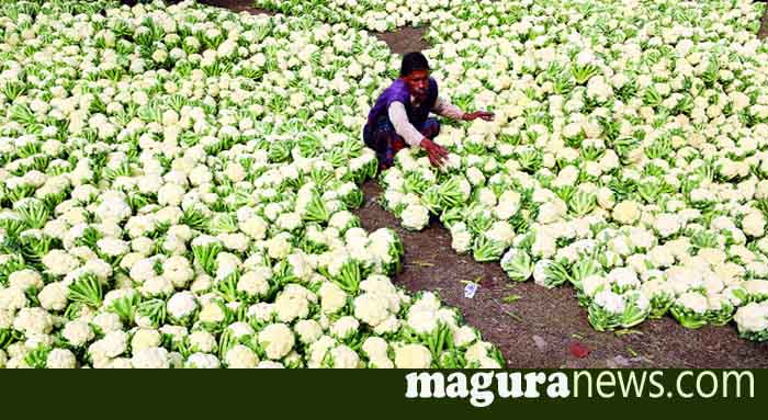 মাগুরায় ব্যাপক ফলনে শীতের সবজি’র দাম নিম্নমুখি। মাগুরা কাঁচা বাজারের ব্যাপারীরা বলছেন, এখন শীতের সবজির ভরপুর মৌসুম। প্রচুর আমদানি। আগাম এই ফুলকপি বিক্রি করেছি ৬০ টাকায়, আর আজ বিক্রি করেছি ৫ টাকা কেজি দরে।