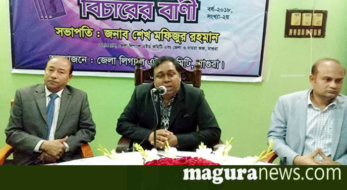 বাংলাদেশকে একটি কল্যানকর রাষ্ট্রে পরিণত করার লক্ষে সম্মিলিত প্রচেষ্টায় একটি মানবিক মহাসমাজ গড়ে তোলার আহবান জানিয়েছেন মাগুরা জেলা লিগ্যাল এইড কমিটির চেয়ারম্যান, বিজ্ঞ জেলা দায়রা জজ শেখ মফিজুর রহমান। মাগুরা জেলা লিগ্যাল এইড কমিটির বিশেষ প্রকাশনা ‘বিচারের বাণী’র মোড়ক উন্মোচনী অনুষ্ঠানে সভাপতির ব্যক্তব্যে তিনি এ আহবান জানান।