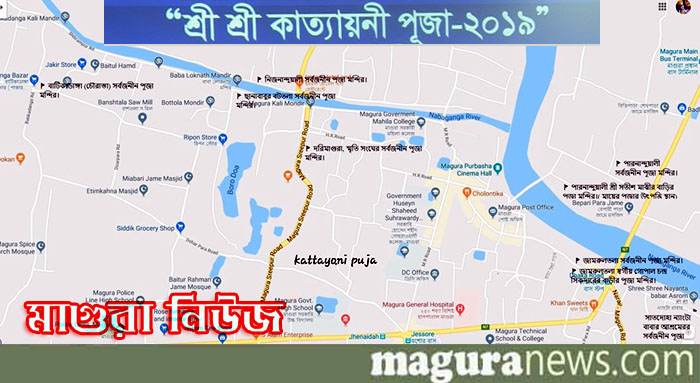 কাত্যায়নী পূজায় আগত দর্শনার্থীদের পূজা দেখতে যাতে কোনো সমস্যা না হয় তার জন্য মাগুরা নিউজের পক্ষ থেকে পূজা গাইড ম্যাপ প্রকাশ করা হয়েছে। এবারে মাগুরা শহরে মোট ১১টি মন্ডপে পূজা অনুষ্ঠিত হচ্ছে। ম্যাপটি থেকে দর্শনার্থীরা সুবিধামতো বিভিন্ন পূজামণ্ডপে প্রতিমা দর্শন করতে পারবেন।