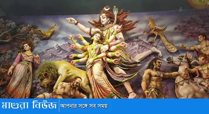 আছ কাত্যায়নী পূজার মহা অষ্টমী। জনজোয়ারে ভাসছে গোটা মাগুরা শহর। জনতা ভিড় জমাচ্ছে শহরের মণ্ডপে মণ্ডপে। যথারীতি এবারও অপূর্ব সাজে সেজেছে পূজামণ্ডপগুলো। বিভিন্ন থিম ধরে গড়া হয়েছে প্রতিমা। শৈল্পিক প্রতিমা’য় মোহিত আগত দর্শনার্থীরা। প্যান্ডেলে প্যান্ডেলে মানুষের ভিড়। যে দিকে তাকানো যাচ্ছে, শুধুই কালো মাথার সারি। দলবেধে চলছে পূজা পরিদর্শন। শহরে যান চলাচল বন্ধ রয়েছে।