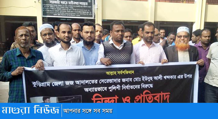 বাংলাদেশ বিচার বিভাগীয় কর্মচারী এসোসিয়েশনের সদস্য ও কুড়িগ্রাম জেলা জজ আদালতের সেরেস্তাদার মো. ইউনুছ আলী খন্দকারের উপর পুলিশী নির্যাতনের প্রতিবাদে মাগুরাতে মানববন্ধন ও প্রতিবাদ সমাবেশে করেছে বাংলাদেশ বিচার বিভাগীয় কর্মচারী এসোসিয়েশন, মাগুরা জেলা শাখা।