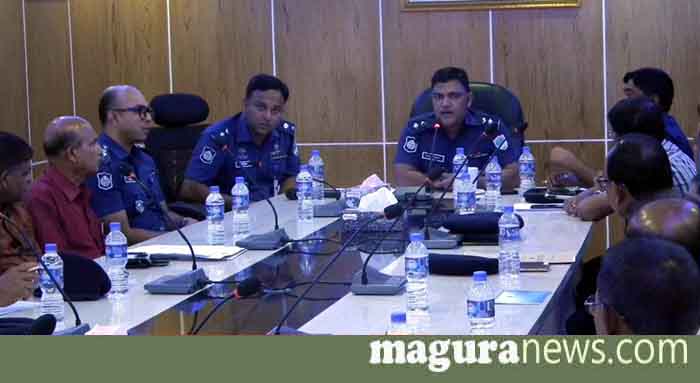 মাগুরা জেলার সনাতন ধর্মাবলম্বী নেতৃবৃন্দের সাথে মাগুরা পুলিশের মতবিনিময় সভা অনুষ্ঠিত হয়েছে। আজ বুধবার সকাল ১১.৩০ ঘটিকার সময় পুলিশ সুপারের কার্যালয়ের সম্মেলন কক্ষে এ মতবিনিময় সভা অনুষ্ঠিত হয়। সভায় সভাপতিত্ব করেন পুলিশ সুপার জনাব খান মুহাম্মদ রেজোয়ান, পিপিএম।