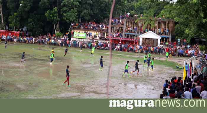 বৃষ্টি কোনোভাবেই দমাতে পারেনি মাগুরার ফুটবল ভক্তদের। ঘর থেকে বের হওয়াটাই যেখানে দায়, সেখানে দমিয়ে রাখা যায়নি মাগুরার ফুটবল প্রেমীদের। আজ সদরের আলোকদিয়া মাঠে মাগুরা সদর উপজেলা গোল্ডকাপ আন্তঃইউনিয়ন ফুটবল টুর্নামেন্টের তৃতীয় ভেন্যুর উদ্বোধনী ম্যাচে জগদল ইউনিয়ন মুখোমুখি হয় বগিয়া ইউনিয়ন দলের। বৃষ্টিকে তোয়াক্কা না করে মাঠে নামে দর্শকের ঢল। ফুটবলপ্রেমীদের উন্মাদনায় মুখরিত হয়ে ওঠে আলোকদিয়া মাঠ।