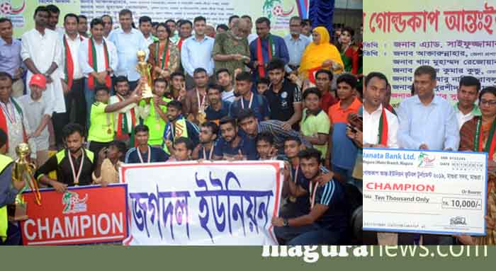 উপজেলা গোল্ডকাপ আন্তঃইউনিয়ন ফুটবল টুর্নামেন্ট ২০১৯ চ্যাম্পিয়ন হওয়ার গৌরব অর্জন করেছে জগদল ইউনিয়ন একাদশ। খেলায় জয়সূচক একমাত্র গোলটি করেন দিলহাজ। খেলার ৪১ মিনিটের মাথায় গোলটি করেন তিনি। শনিবার বেলা ৩টায় মাগুরা বীর মুক্তিযোদ্ধা আছাদুজ্জামান স্টেডিয়ামে ফাইনাল খেলাা অনুুুষ্ঠিত হয়। হাজারো দর্শক খেলাটি উপভোগ করেন।