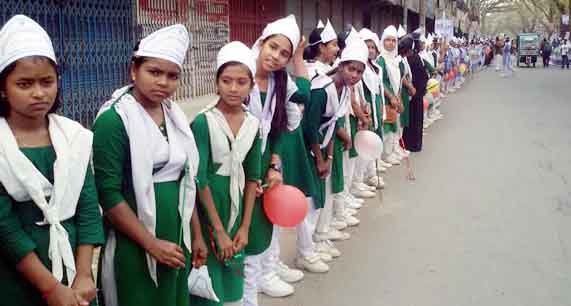 পরে জেলা প্রশাসকের কার্যালয়ের সামনে কলেজ রোডে মানববন্ধন অনুষ্ঠিত হয়। এতে জেলার বিভিন্ন শিক্ষা প্রতিষ্ঠানের শিক্ষার্থীরা অংশ নেয়।