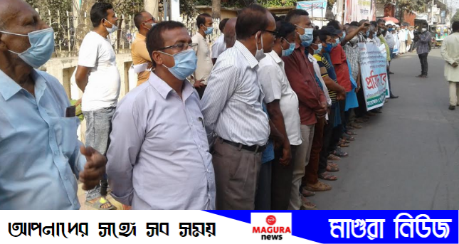 চিঠি দেওয়ার ঘটনার প্রতিবাদে মাগুরায় মানববন্ধন ও সমাবেশ অনুষ্ঠিত হয়েছে।