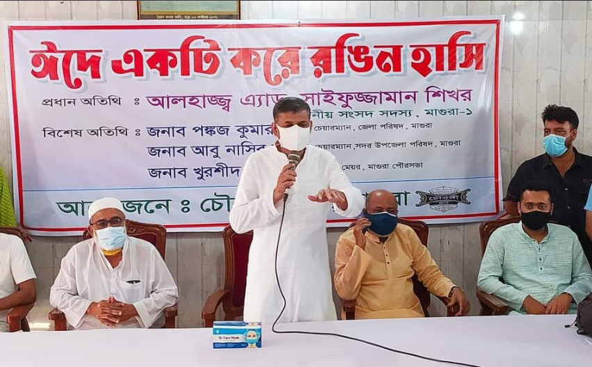 “ঈদে একটি করে রঙিন হাসি” এই স্লোগানকে সামনে রেখে চৌরঙ্গী ক্লাব মাগুরার সদস্যদের আয়োজনে ১০০ সুবিধাবঞ্চিত শিশুদের মাঝে রঙিন পোশাক বিতরণ করা হয়েছে। আজ বুধবার বিকেল ৩ টায় সৈয়দ আতরআলী গনগ্রন্থাগার চত্বরে এ আয়োজনে প্রধান অতিথি হিসেবে উপস্থিত ছিলেন মাগুরা-১ আসনের সংসদ সদস্য এডঃ সাইফুজ্জামান শিখর, বিশেষ অতিথি হিসেবে উপস্থিত ছিলেন সদর উপজেলা পরিষদ চেয়ারম্যান জনাব আবু নাসির বাবলু, পৌর মেয়র খুরশিদ হায়দার টুটুল। চৌরঙ্গী ক্লাবের আহবায়ক আসিফ হাসান শাকিল জানান, পুরো রমজান মাস জুড়ে ক্লাবের সদস্যদের অর্থায়নে প্রতিদিন শহরের বিভিন্ন এলাকায় ১০০ শ্রমজীবী মানুষদের মাঝে ইফতার বিতরণ করা হয়েছে। আজ আমরা একটি ভিন্নধর্মী আয়োজন করলাম যার মাধ্যমে ১০০ শিশুর মুখে হাসি ফোটালাম।