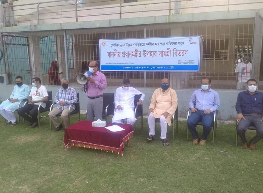 কোভিড-১৯ পরিস্থিতিতে কর্মহীন হয়ে পড়া ব্যক্তিদের মাঝে মাননীয় প্রধানমন্ত্রীর উপহার সামগ্রী বিতরণ করা হয়েছে। জেলা প্রশাসক ডঃ আশরাফুল আলম এর সভাপতিত্বে এ সময় প্রধান অতিথি হিসেবে উপস্থিত থেকে খাদ্যসামগ্রী বিতরণ করেন মাগুরা-১ আসনের মাননীয় সংসদ সদস্য জনাব আলহাজ্ব এ্যাড. সাইফুজ্জামান শিখর। আরো উপস্থিত ছিলেন সদর উপজেলা পরিষদ চেয়ারম্যান আবু নাসির বাবলু, অতিরিক্ত জেলা ম্যাজিস্ট্রেট, উপজেলা নির্বাহী অফিসার, জেলা ক্রীড়া সংস্থার সাধারণ সম্পাদক, সাংবাদিকবৃন্দ সহ অন্যান্য ব্যক্তিবর্গ।