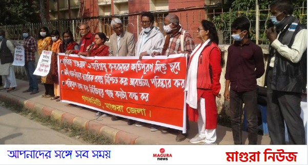 ঘূর্নিঝড় জাওয়াদ এর কারনে কৃষকদের ক্ষতিপূরন, নদী খাল বিলে পানি প্রবাহ নিশ্চিত করা, পরিবেশ রক্ষ্যায় নির্বিচারে গাছ কাটা বন্ধের দাবীতে মাগুরায় মানববন্ধন অনুষ্ঠিত হয়েছে। আজ বুধবার দুপুর ১২টায় শহরের চৌরঙ্গীমোড় প্রেসক্লাবের সামনেন সড়কে জেলা গণকমিটি এর আয়োজন করেন।