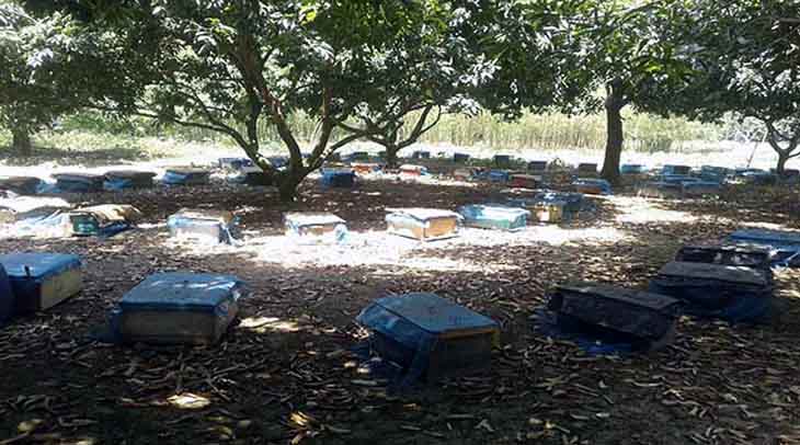 লিচু বাগানগুলোতে মৌ খামারিরা ছোটবড় বিভিন্ন আকৃতির মৌমাছির বাক্স বসিয়ে বৈজ্ঞানিক উপায়ে মৌ চাষ করে মধু সংগ্রহ করছেন।
