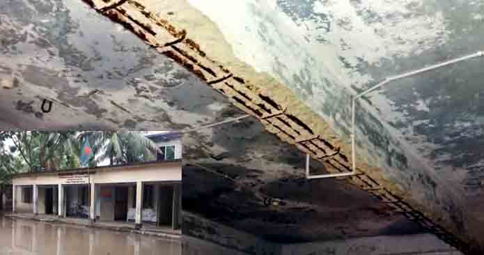 বিদ্যালয়ের প্রধান শিক্ষক শেফালী রানী বিশ্বাস বলেন, ভবনের চারটি রুমের সব ক’টিতেই ছাদের পলেস্তরা ও ইটের খোয়া খসে পড়েছে। যেকোনও সময় পুরো ভবনটি ধসে ১৭০ জন ছাত্রছাত্রী ও ছয়জন শিক্ষকের প্রাণহানি ঘটতে পারে