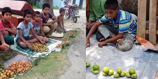কুড়িয়ে পাওয়া আম-লিচু নিয়ে ব্যস্ত মাগুরার ক্ষুদে ব্যবসায়ীরা। গ্রামে গেলেই চোখে পড়ছে স্কুল পড়ুয়া ছেলেমেয়েদের ব্যস্ততা। তারা ঝরে যাওয়া আম-লিচু সংগ্রহ করতে ব্যস্ত সময় কাটাচ্ছে।