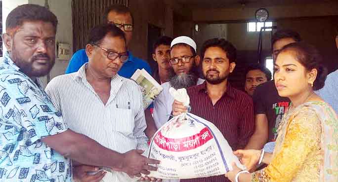 ছবিতে বুধবার বিনা উপকেন্দ্র মাগুরার মাধ্যমে পুষ্টি নিরাপত্তা প্রকল্পের অর্থায়নে প্রদর্শনী প্লট স্হাপনের জন্য বিনা উদ্ভাবিত স্বল্প জীবনকালীন ধানের জাত বিনাধান-৭, ১৬,১৭ ও সার বিতরন।