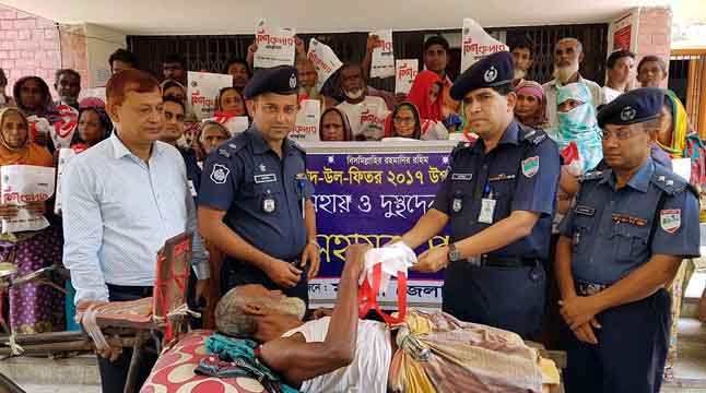 আজ পুলিশ সুপারের কার্যালয় প্রাঙ্গনে জেলা পুলিশের পক্ষে পুলিশ সুপার জনাব মোঃ মুনিবুর রহমান নিজ হাতে অসহায় ও দুস্থদের মাঝে শাড়ী, লুঙ্গি ও নগদ টাকা বিতরন করেন। এসময় অতিরিক্ত পুলিশ সুপার তরিকুল ইসলামসহ অন্যান্য কর্মকর্তারা উপস্থিত ছিলেন।