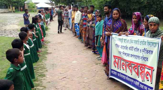 আজ বৃহস্পতিবার দুপুরে স্কুল প্রাঙ্গনে শিক্ষার্থী, অভিভাবক ও এলাকাবাসী বিক্ষোভ প্রদর্শন ও মানবন্ধন করছে ওই প্রধান শিক্ষকের বিরুদ্ধে। প্রধান শিক্ষক ফারুকুজ্জামান দলুর স্বেচ্ছাচারিতা ও অনিয়ম দুর্নীতির বিরুদ্ধে নানা শ্লোগান দিয়ে তাকে অপসারণ ও অবৈধ ম্যানেজিং কমিটি বাতিলের দাবী জানিয়েছেন তারা।