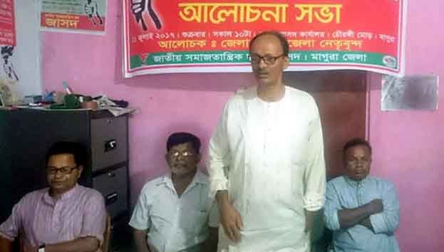 সকাল ১১ টায় শহরের চৌরঙ্গী মোড়স্থ দলীয় কার্যালয়ে বীর মুক্তিযোদ্ধা বিমল বিশ্বাসের সভাপতিত্বে অনুষ্ঠিত আলোচনা সভায় বক্তব্য রাখেন জেলা জাসদ সাধারণ সম্পাদক সমীর চক্রবর্তি, সম্মেলন প্রস্তুতি কমিটির আহবায়ক মিয়া ওয়াহিদ কামাল বাবলু, জাসদ নেতা আতিয়ার রহমান জোয়ারদার, আশরাফ আলি, মশিয়ার রহমান, সফিকুল ইসলাম গোর্কিসহ আরো অনেকে।