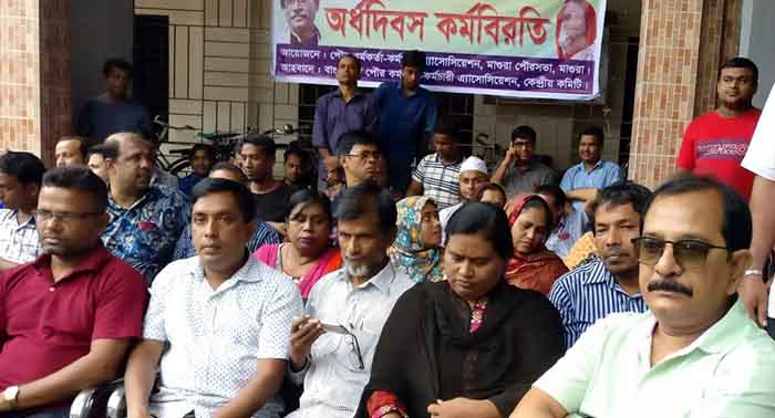 রাষ্ট্রীয় কোষাগার থেকে বেতন ভাতা দেয়ার দাবীতে মাগুরায় সোমবার সকাল থেকে অর্ধদিবস কর্মবিরতী পালন করেছে মাগুরা পৌরসভার পৌর কর্মকর্তা-কর্মচারি এসোসিয়েশন। পৌর কর্মকর্তা-কর্মচারি এসোসিয়েশনের কেন্দ্রীয় কমিটির আহবানে সকাল ৯টা থেকে দুপুর ১টা পর্যন্ত এ কর্মবিরতী চলে।