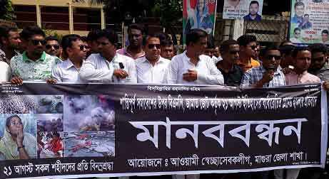 ২১ আগষ্ট গ্রেনেড হামলার প্রতিবাদে আজ সকালে মাগুরায় মানববন্ধন করেছে জেলা আওয়ামী স্বেচ্ছাসেবক লীগ।