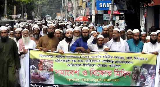 এ সময় তারা সরকারি বাহিনীর রোহিঙ্গাদের নাগরিকত্ব প্রদান এবং তাদের উপর নির্যাতন বন্ধের দাবি জানিয়ে বক্তব্য রাখেন।