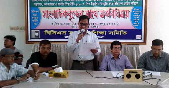 বেলা সাড়ে ১২টায় মাগুরা সরকারি হোসেন শহীদ সোহরাওয়ার্দী কলেজের সহযোগী অধ্যাপক লক্ষণ কুমার সাহার সভাপতিত্বে অনুষ্ঠিত মত বিনিময় সভায় লিখিত বক্তব্য উপস্থাপন করেন সংগঠনের জেলা শাখার সাধারণ সম্পাদক অধ্যাপক আবু সাইদ মোল্যা।