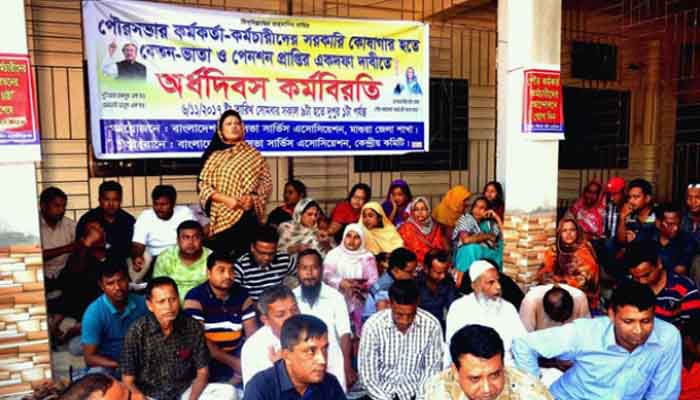 রাজস্ব খাতে বেতন ভাতার দাবিতে মাগুরা পৌরসভার তিন শতাধিক কর্মকর্তা-কর্মচারী আজ সোমবার অর্ধদিবস কর্মবিরতি পালন করেছেন।