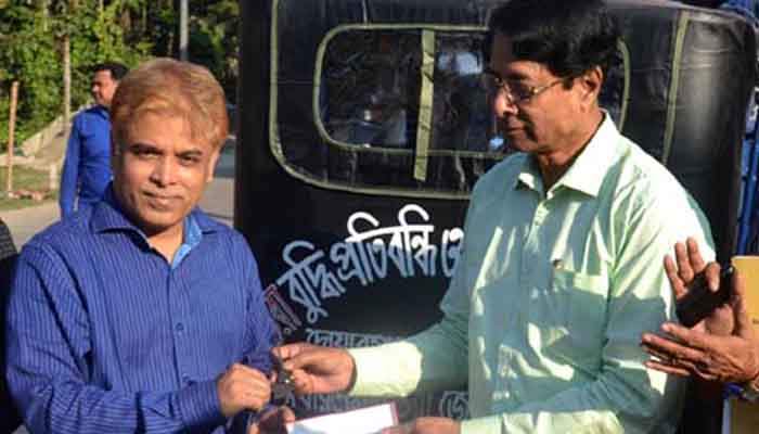 বৃহস্পতিবার বিকেলে স্কুল চত্বরে পরিচালনা কমিটির সভাপতি ও জেলা প্রশাসক মো. আতিকুর রহমানের হাতে ইজিবাইকের চাবি তুলে দেন জেলা পরিষদের চেয়ারম্যান পংকজ কুমার কুন্ডু।