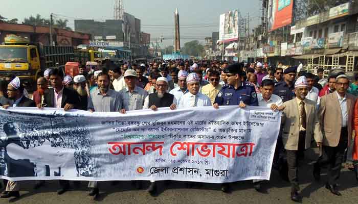 জাতির জনক বঙ্গবন্ধু শেখ মুজিবুর রহমানের ঐতিহাসিক ৭ই মার্চের ভাষণকে দেওয়া ইউনেস্কোর স্বীকৃতি উদযাপনে মাগুরাতে আনন্দ শোভাযাত্রা অনুষ্ঠিত হয়েছে।