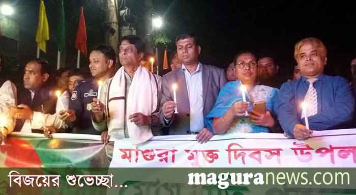 একটি নয়, দু’টি নয়, হাজারো মোমবাতি। মুহূর্তেই অন্ধকার ছাপিয়ে হাজার হাজার মোম জ্বলে ওঠে। আলোয় আলোকিত হয়ে যায় পুরো মাগুরা শহর। সন্ধা ৬টায় ঘরে ঘরে, রাস্তায় রাস্তায়, জনে জনে জ্বালানো মোমবাতির আলোয় অন্ধকার কেটে গেছে প্রতিবাদী তীব্রতায়।