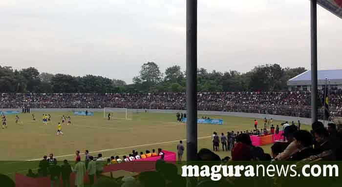 মাগুরার মানুষের ফুটবলপ্রেম, ফুটবল উন্মাদনা অনেক আগেই প্রমাণিত। আজ আবারও দেখিয়ে দিলো মানুষের স্রোত বীর মুক্তিযোদ্ধা আছাদুজ্জামান স্টেডিয়ামের জনসমুদ্র। ছুটির দিনে কাজের ফাঁকে একটু হাঁফছেড়ে বাঁচার উপলক্ষ্য। ম্যাচের টিকিট হাতে পাওয়াটাও যেন ছিল সোনার হরিণের মতোই। তবে সবকিছুর ঊর্ধ্বে জায়গা করে নিয়েছে ফুটবল ঘিরে মাগুরার মানুষের ফুটবল প্রেমের নবজাগরণ।